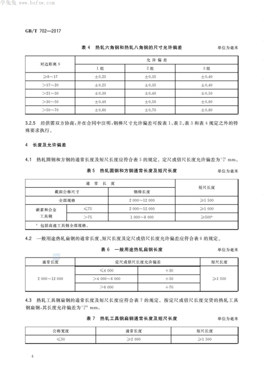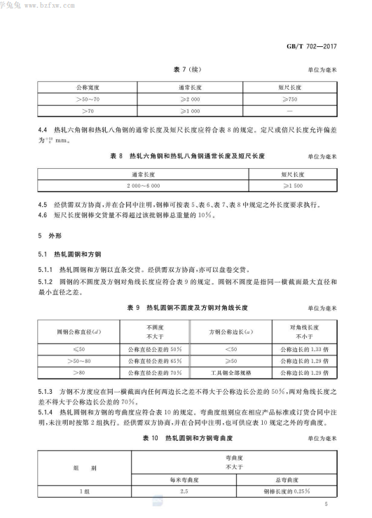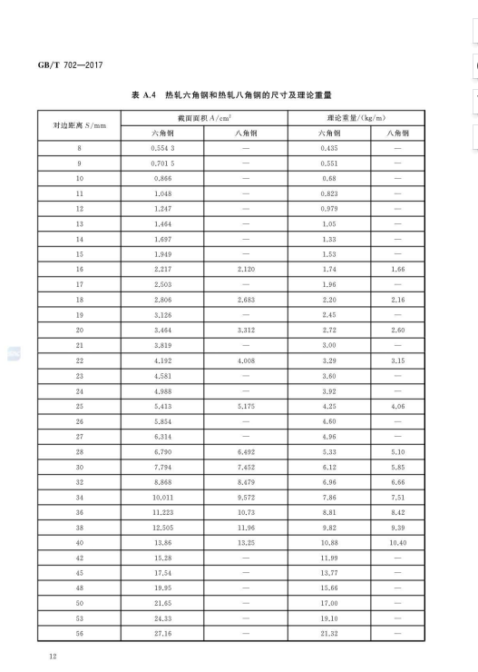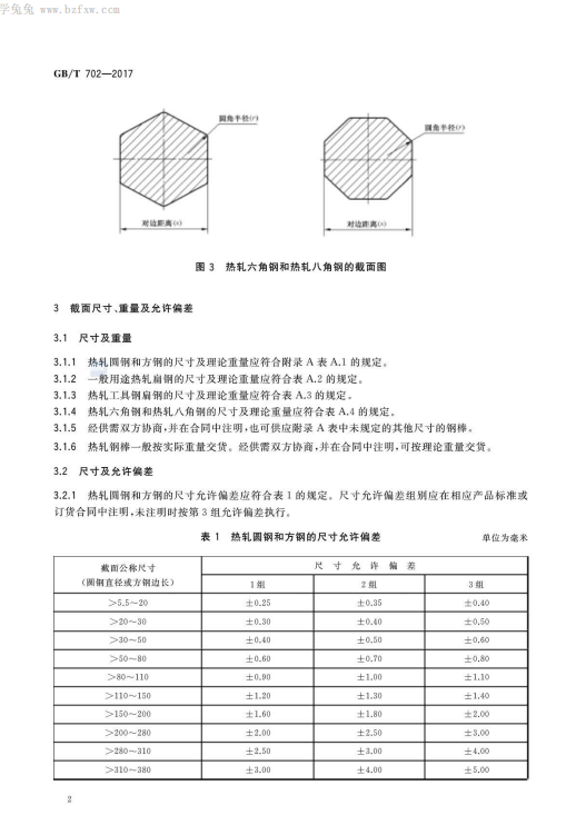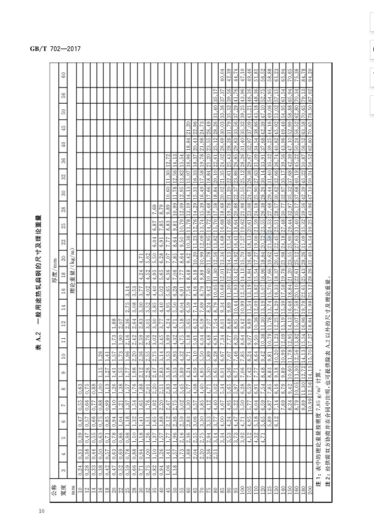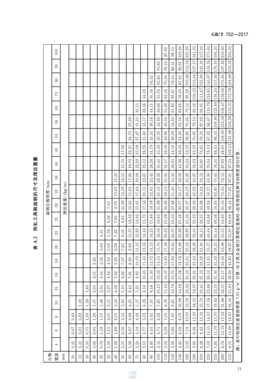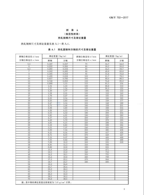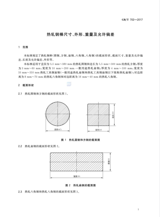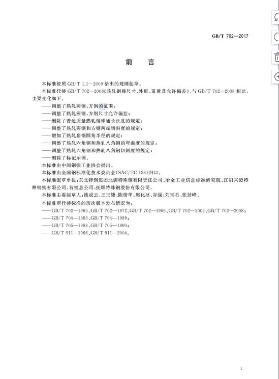 熱軋鋼棒尺寸、外形、重量及允許偏差GB/T702-2017